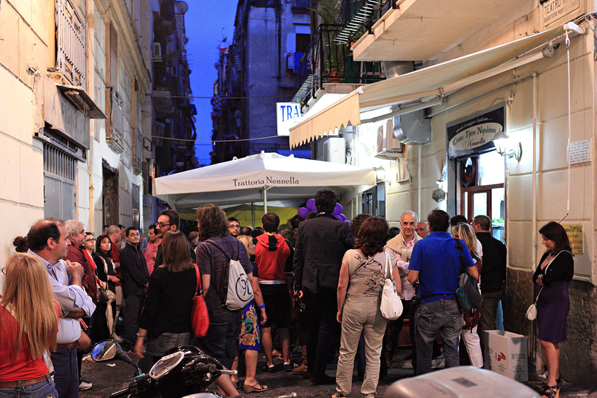 Naples - Une rue animée des Quartiers Espagnols en début de soirée | EOS 5D Mk II | EF 24-70mm (42mm) 1/50e | f/3.5 | iso-3200 |