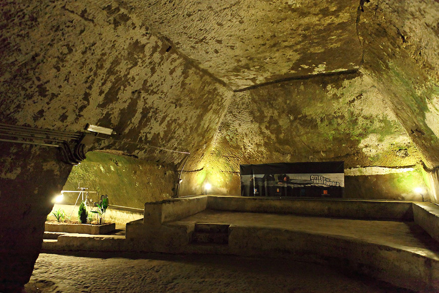 Naples souterraine Salle dans une ancienne carrière gréco-romaine de tuf | EOS 5D Mk II | EF 24-70mm (24mm) 1/30e | f/3.2 | iso-6400 |
