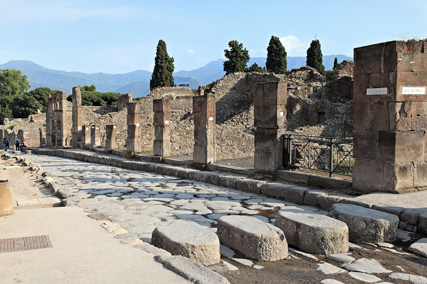 Une rue de Pompéi avec passage surélevé pour les piétons