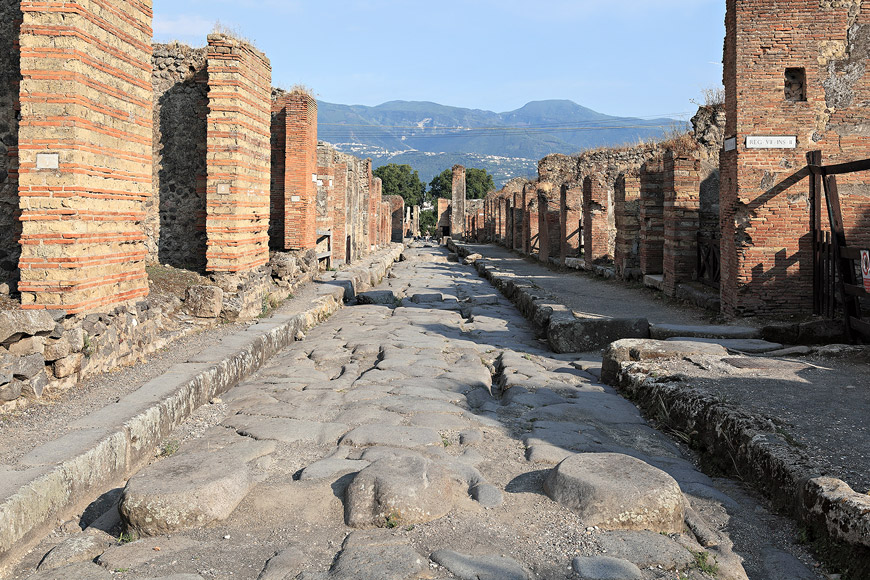 Une rue de Pompéi avec passage surélevé pour les piétons