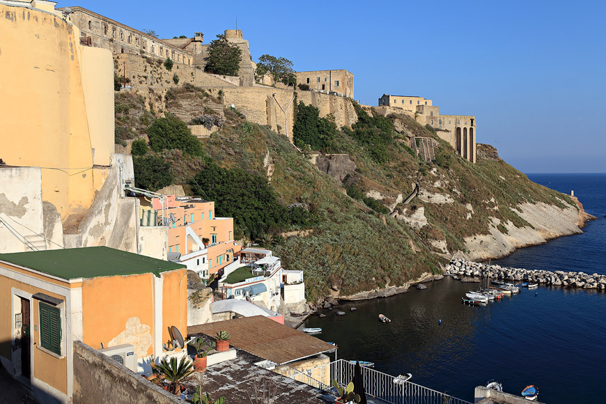 Vue sur la colline de Terra Murata depuis la Via San Rocco - Ile de Procida Au fond l'église abandonnée Santa Margherita Vecchia | EOS 5D Mk II | EF 24-70mm (34mm) 1/250e | f/8 | iso-100 |