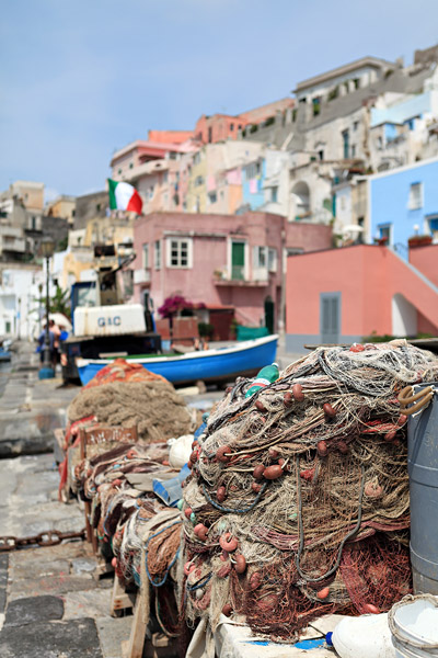 Filets de pêche sur le front de mer de Marina Corricella - Ile de Procida