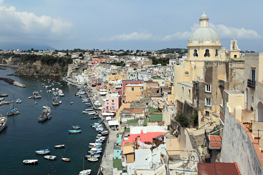 Vue sur Marina Corricella et l'église Santa Maria delle Grazie Ile de Procida | EOS 5D Mk II | EF 24-70mm (30mm) 1/500e | f/8 | iso-100 |