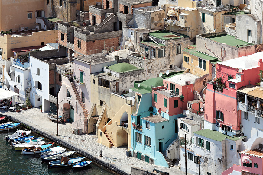 Les maisons de Marina Corricella étagées jusqu'à la mer Ile de Procida | EOS 5D Mk II | EF 70-200mm IS (144mm) 1/400e | f/8 | iso-100 |