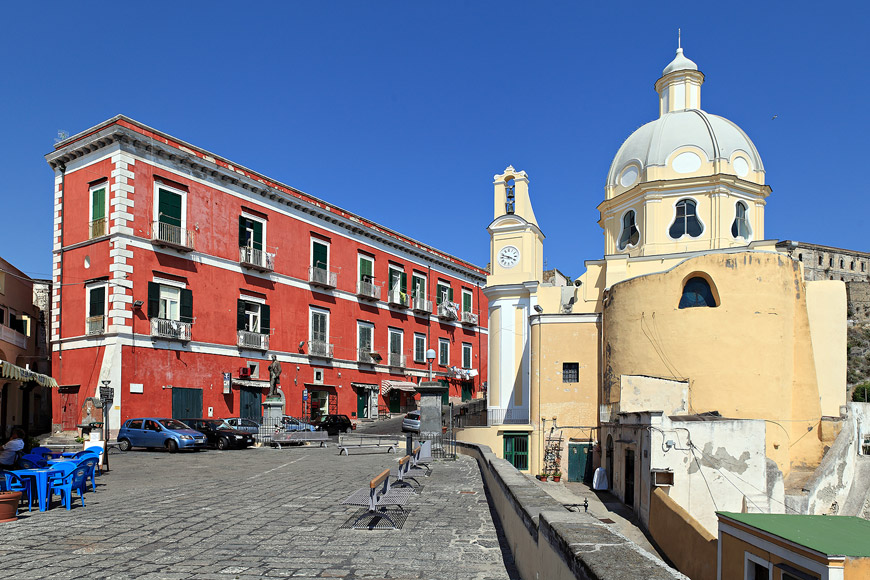 Piazza dei Martiri et l'église Santa Maria delle Grazie Ile de Procida | EOS 5D Mk II | EF 24-70mm (24mm) 1/400e | f/8 | iso-100 |