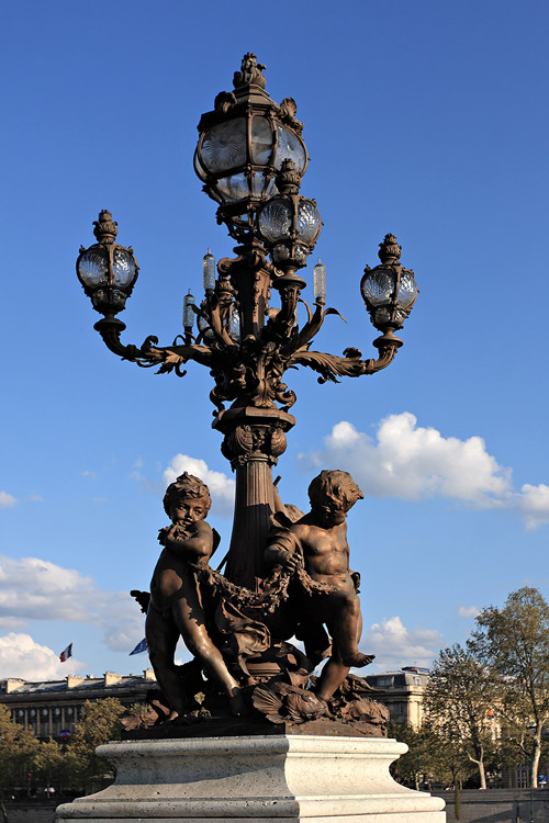 Un des 4 candélabres d'extrémité du pont Alexandre III