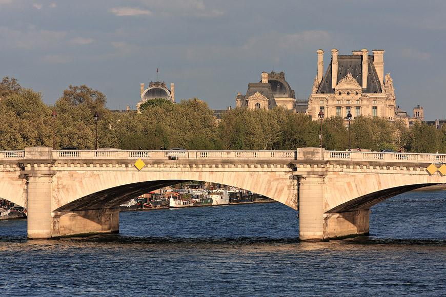 Le pont de la Concorde, en arrière plan les toitures du musée du Louvre