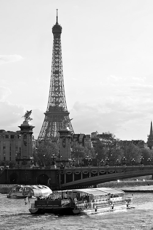La Tour Eiffel et au premier plan le pont Alexandre III