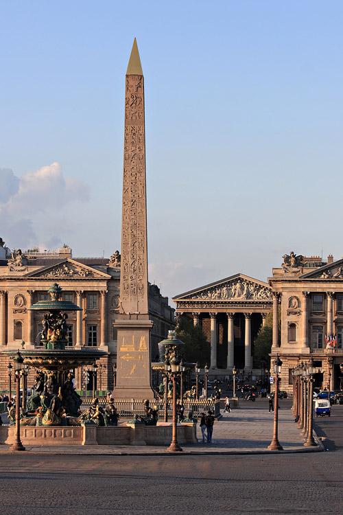 L'Obélisque de Louxour sur la place de la Concorde, au fond la Madeleine