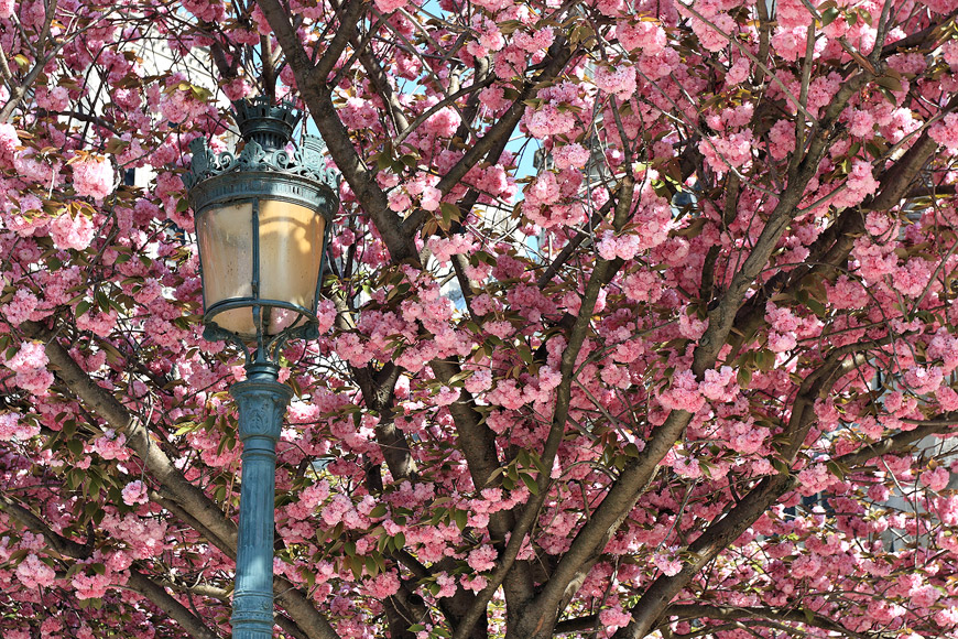 Les arbres en fleurs dans les jardins de la cathédrale Notre-Dame de Paris