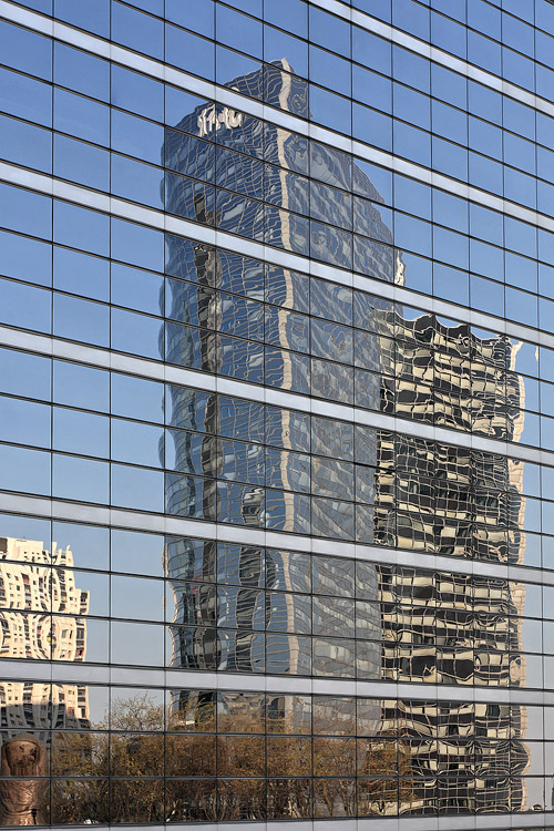 Reflet de la tour Séquoia (SFR) dans une façade vitrée - La Défense