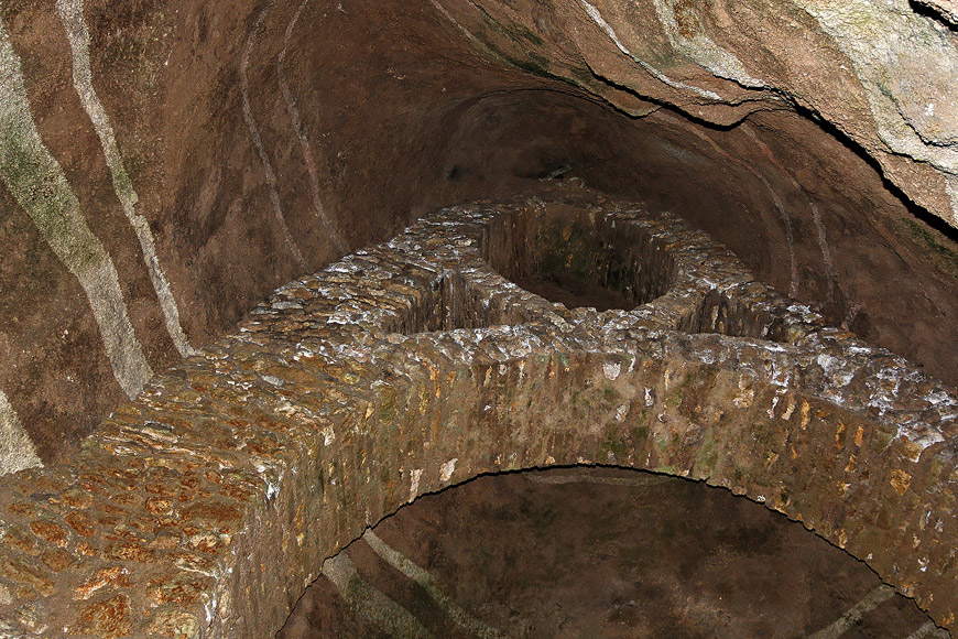 Une cloche de fontis confortée par une jolie arche en maçonnerie
