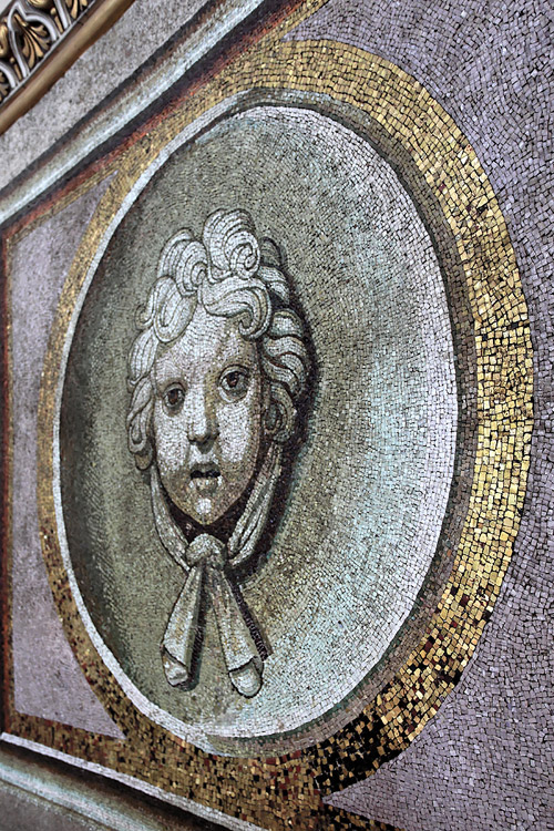 | Le Vatican : mosaïque sous le dôme de la basilique Saint-Pierre EOS 5D Mk II | EF 17-40mm (31mm) | 1/50e | f/4 | iso-1600 | |