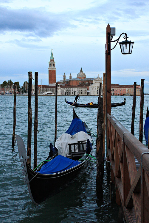 Une gondole, au fond l'Ile de San Giorgio Maggiore EOS 40D | EF 17-40mm (29mm) | 1/100e | f/5 | iso-1000 |
